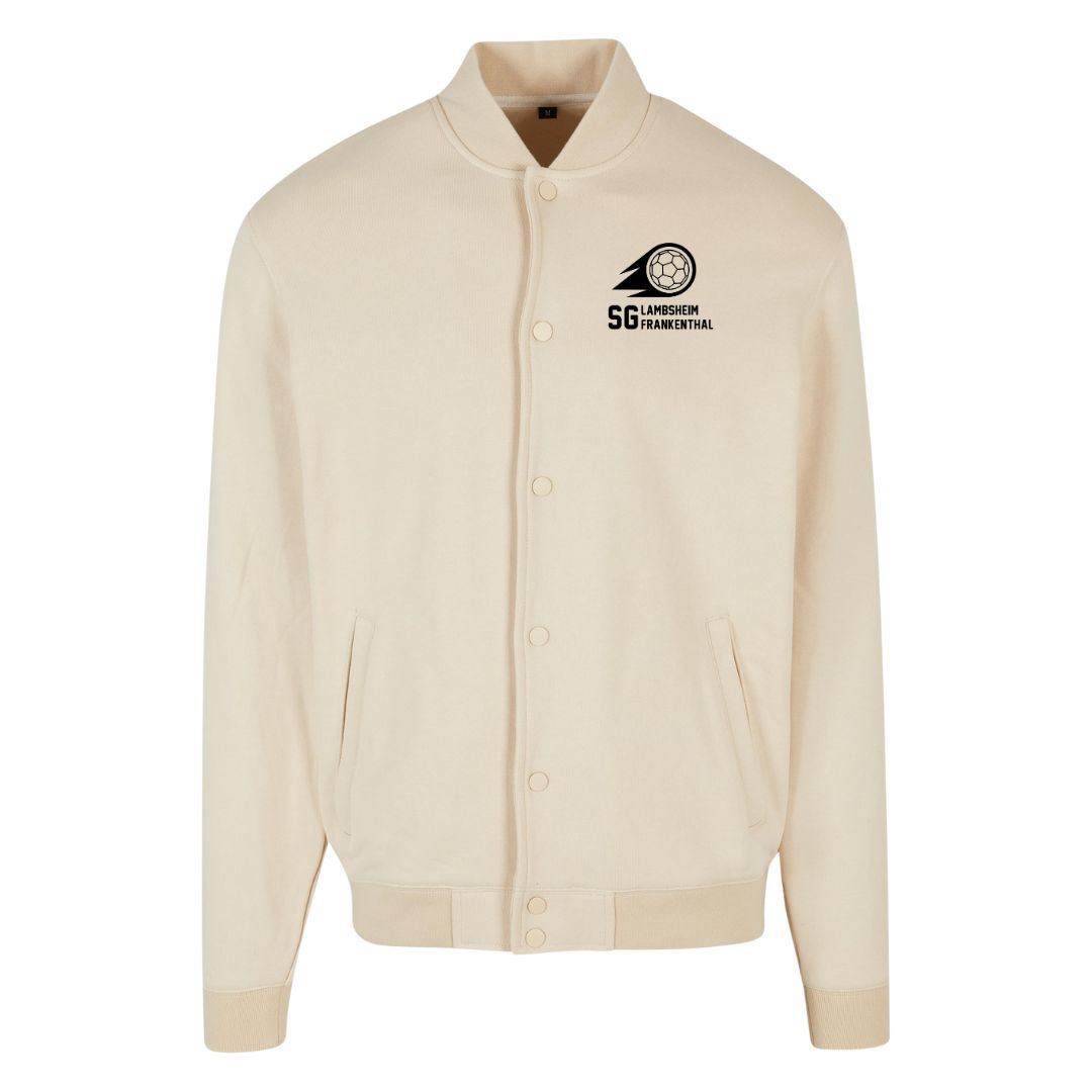 Die SG Lambsheim Frankenthal College Jacke vereint klassischen College-Charme mit modernem Streetstyle. Der Ton-in-Ton-Look in angesagtem Sandton oder edlem Schwarz strahlt schlichte Eleganz aus, während das ikonische Logo kraftvoll den Spirit der Handballer demonstriert